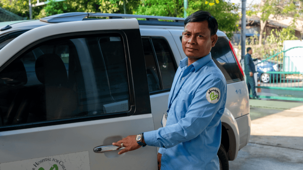 Vichet has been a driver for our hospital for 20 years. He originally started as a gardener and, after two years of hard work, became a full-time driver.